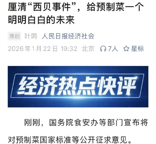 2分钟后,经济社会发布快评:《厘清“西贝事务”,给预制菜一个明大白白的将来》。文章提出对于预制菜关怀的四大焦点问题: